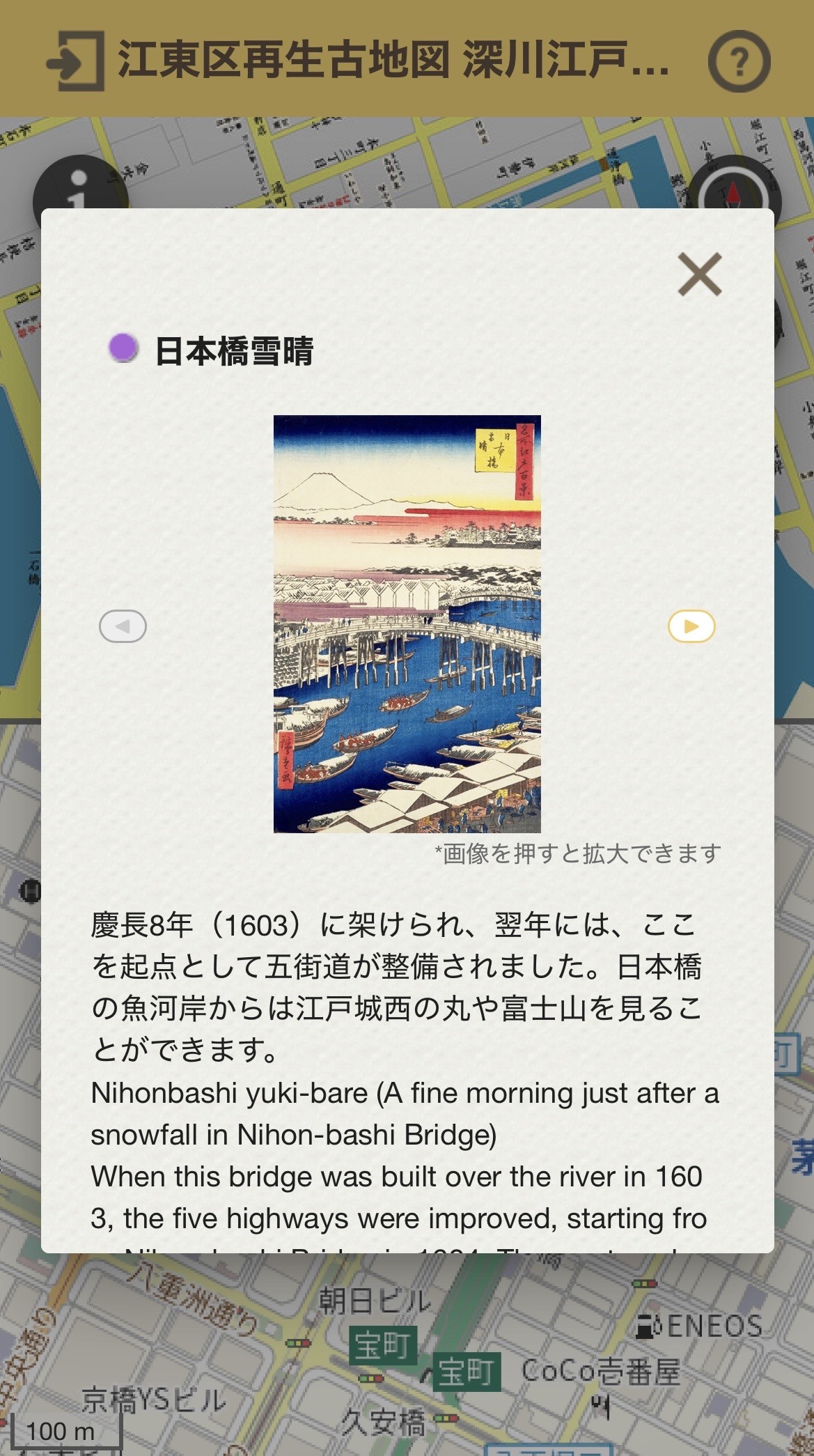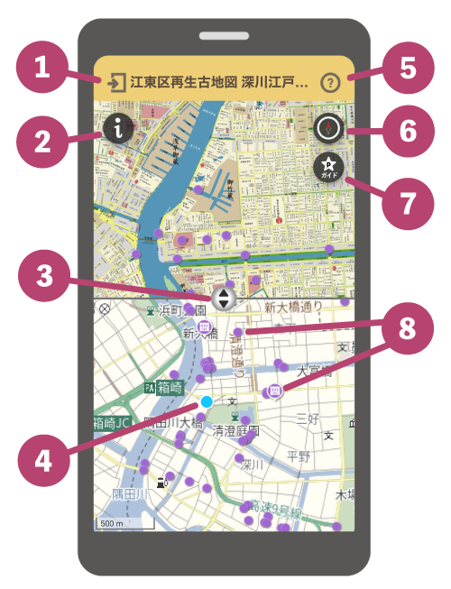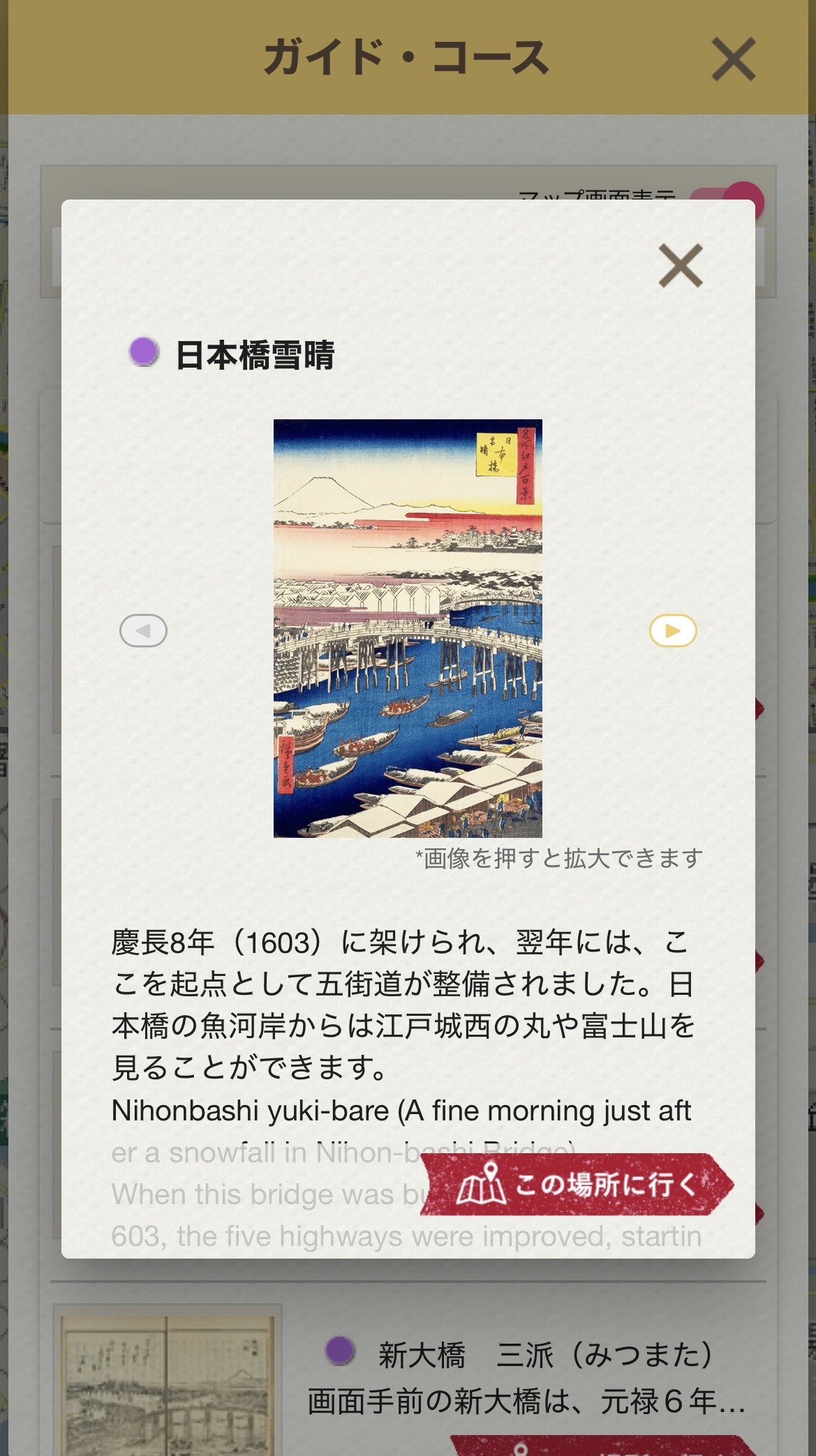 詳細を確認したい地点をタップすると、該当地点の詳細説明/画像をご覧いただけます。