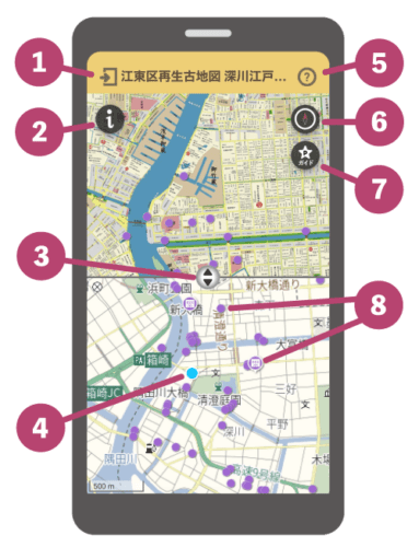 現地でマップをご覧いただく際には、位置情報をONにしてご覧ください。